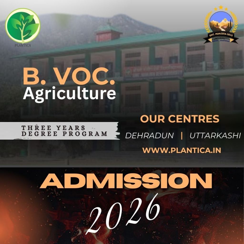PLANTICA is pleased to announce Admissions Open for 2026 for the Bachelor of Vocation (B. Voc.) in Agriculture, a skill-oriented, industry-integrated undergraduate degree designed to create competent agri-professionals and rural entrepreneurs.