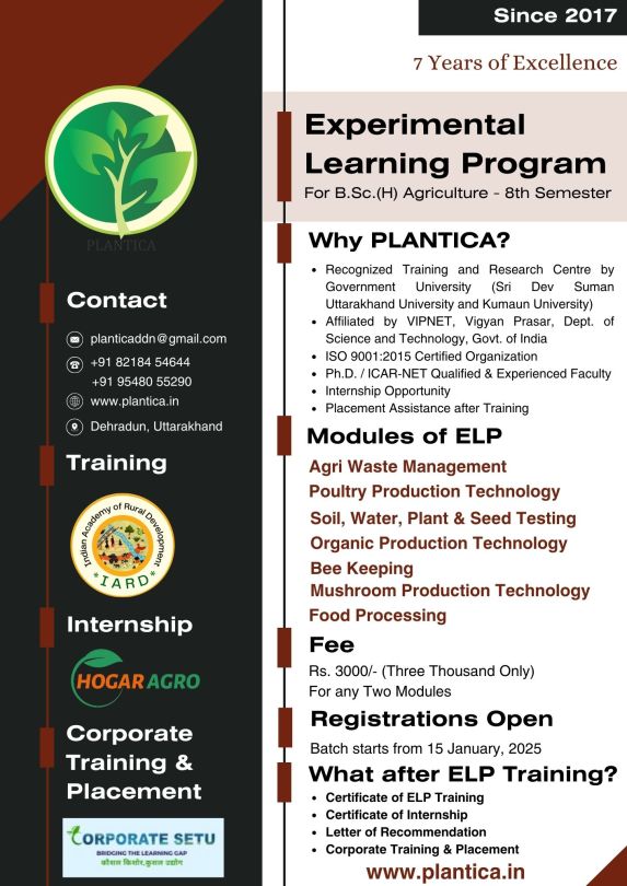 ELP Training – 2025 – PLANTICA 9 Jan 2025 1414 × 2000 ELP Training – 2025 – PLANTICA Experimental Learning Program for B. Sc. (H) Agriculture Final Year