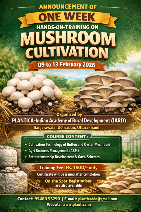 Registration Recent Courses Available- Registration Open: Registration Open- TrainingMushroom Cultivation on Mushroom Cultivation from 09 February, 2026 M. Voc. Agriculture – (ABM) Admission Open – 2026 B. Voc.-Agriculture- Admission Open- 2026 ELP with Industry Internship- Student Exchange Program- 2026 : Registration Open Registration open for : M.Sc. Thesis / Dissertation Research Program – Commenced from January 2026 Share this: Share on X (Opens in new window) X Share on Facebook (Opens in new window) Facebook Like Loading...